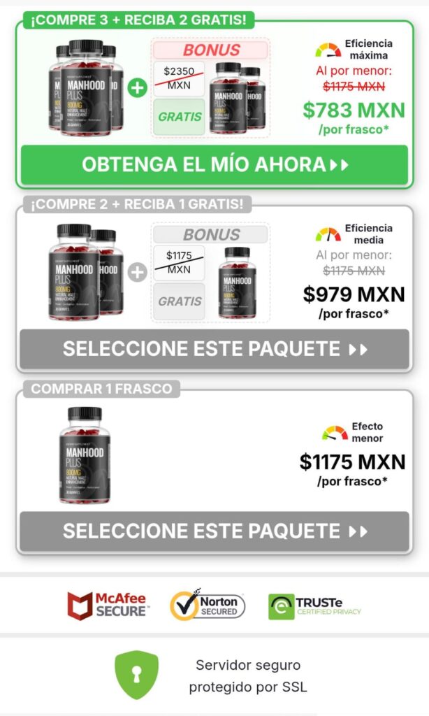 Para tu seguridad, compra siempre Manhood Plus Gummies únicamente desde la página oficial de pedidos. Es la única forma de asegurarte de recibir la fórmula real que miles de hombres en México ya están confiando.